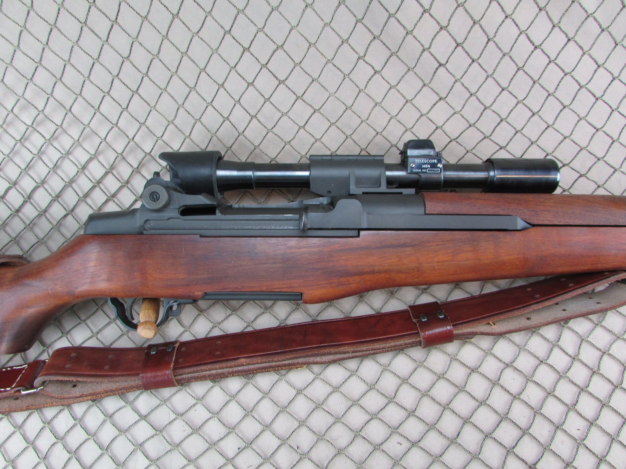 This is an excellent looking International Harvester M1D Garand that was rebuilt by Miltech Arms. Mostly IHC parts including receiver, bolt, trigger housing, safety, hammer, and op rod. Unmarked replacement barrel comes with an excellent bore that gauges just over a 1 at the muzzle and under 2 at the throat which should make this a great shooting Garand. Refinished metal is excellent with no rust or pitting. Walnut stock is also in excellent condition. M84 scope is a rebuilt original that is starting to show some interior flaking (see pictures). Includes Miltech M1D information sheet, FM manual, and two TM manuals. This would be a great rifle to shoot or to add to your US military collection. No import marks.