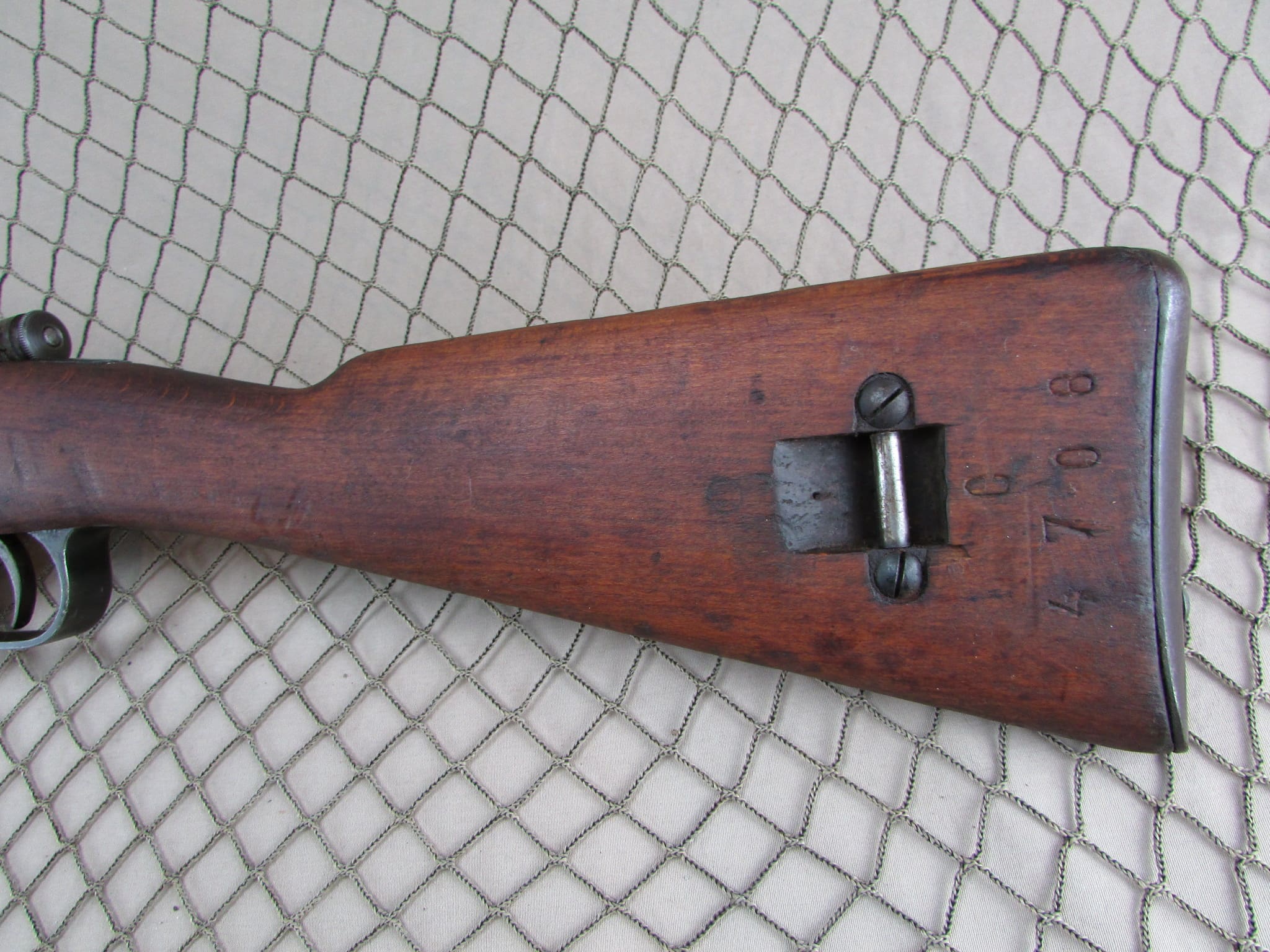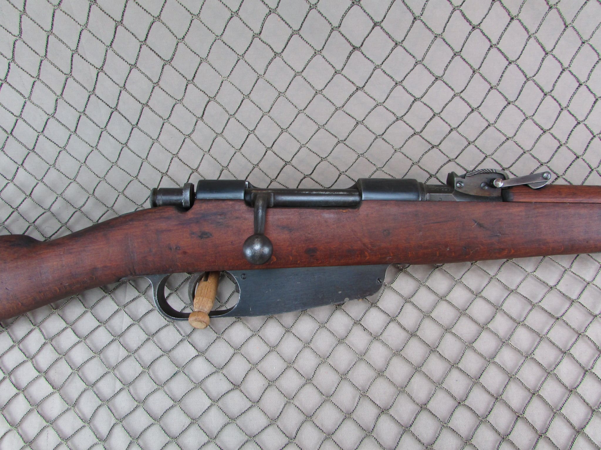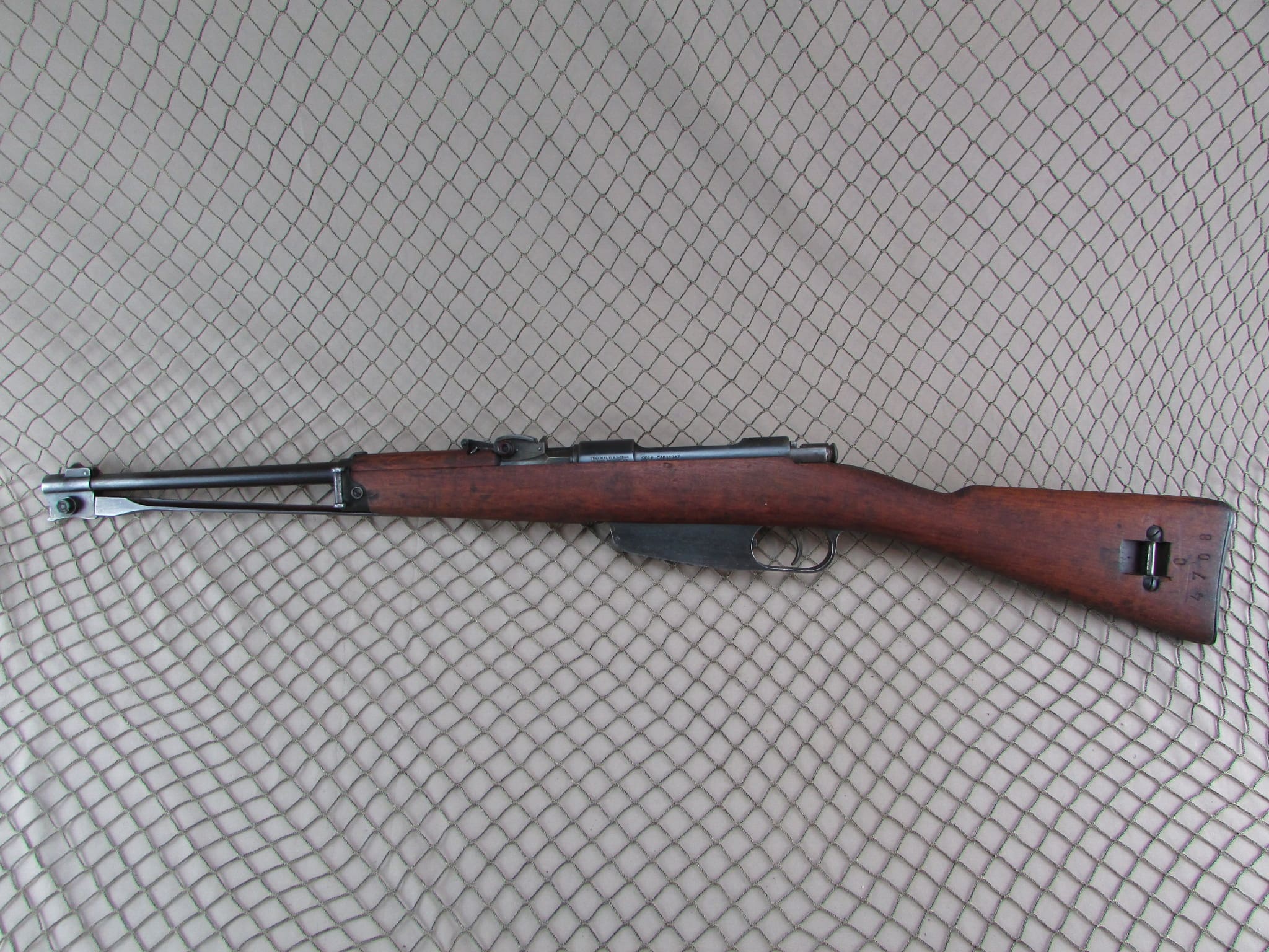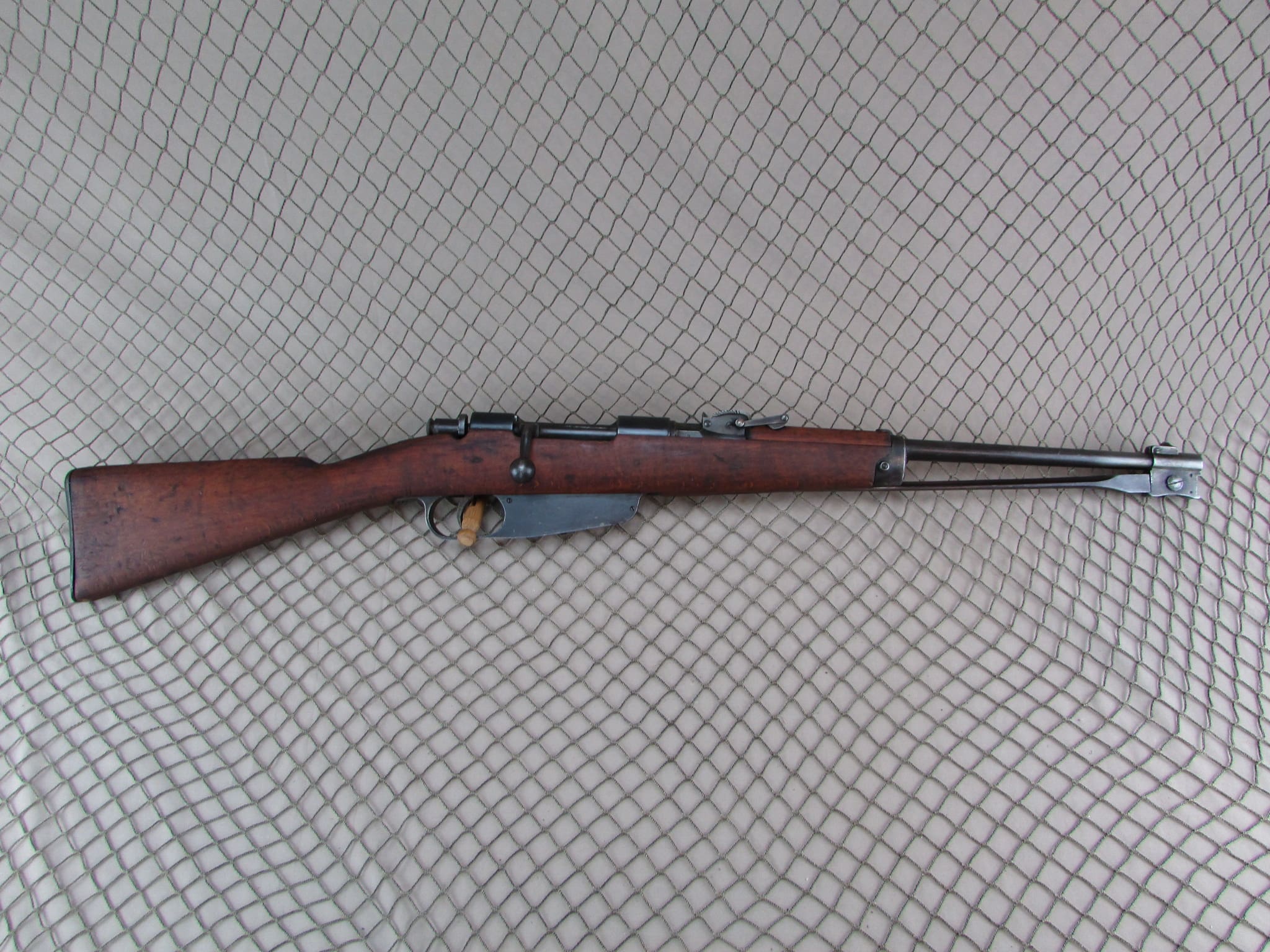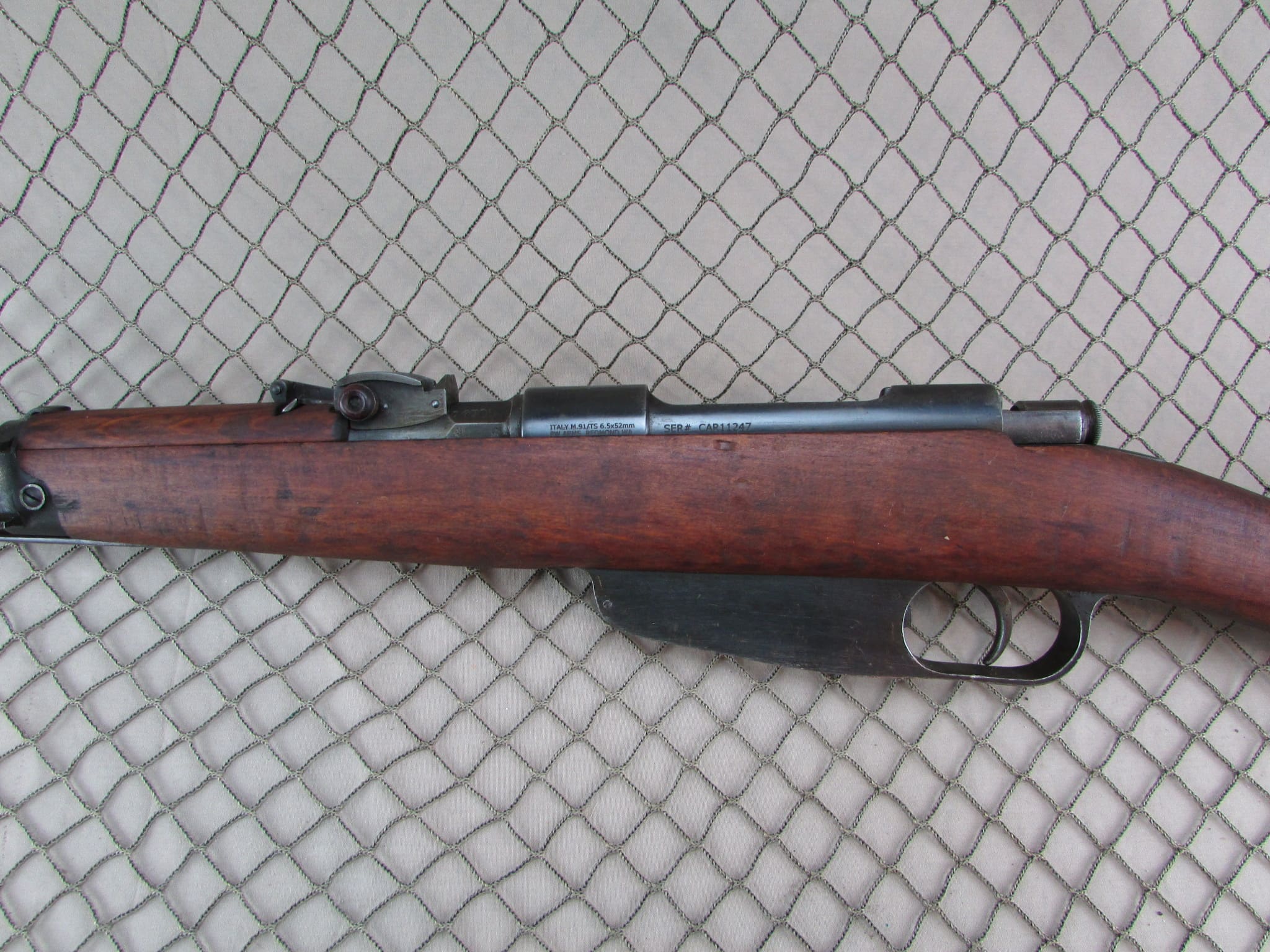 Carcano rifle in very good condition.   Matching numbers on the receiver and stock.  Folding bayonet model in 6.5 Carcano.  Bore is excellent.  Import marked.