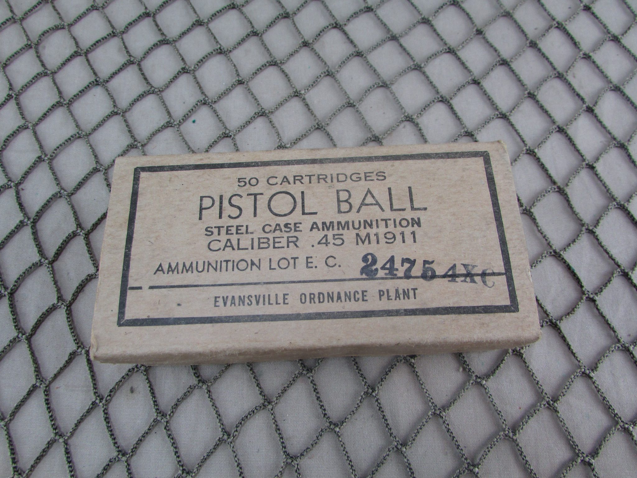 WW2 US M1911 Steel Case 45 ACP 50 Rounds by Evansville Ordnance Plant (Chrysler)